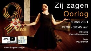 Naar Berlijn Zij zagen oorlog Dag van de Overwinning 05 mei 2021 / 03 maart 2022 door Ksenia Marasanova In Nederland vieren we vrijheid op 5 mei, terwijl de rest van de westerse wereld de overwinning op de Duitsers herdenkt met het vieren van VE-Day op 8 mei. In Oost-Europe herdenken ze het op 9 mei en noemen ze dat de Dag van de Overwinning. Ksenia speelt op de Dag van de Overwinning twee […] Lees verder »